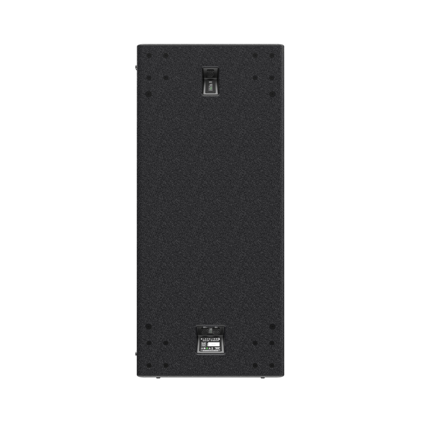 Diseñado para un despliegue flexible, el Q218 puede utilizarse individualmente, apilado o volado mediante insertos M10 integrados. Incluye un accesorio de montaje en poste M20 de 1,4″ (35 mm) para una integración perfecta con otros altavoces de la serie BlacklineQ. Dispone de dos salidas de enlace de señal, una situada en la parte superior y otra en la parte inferior de la caja cuando se orienta verticalmente. Esto permite conexiones de señal flexibles, discretas y ordenadas a otros altavoces BlacklineQ, independientemente de la configuración.