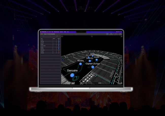 Seguimiento escénico de los artistas para controlar en directo el audio, la iluminación y el vídeo espaciales.